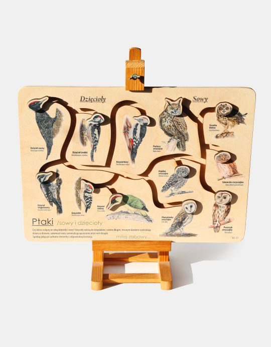 Rewelacyjna gra edukacyjna wykonana w całości z drewna. Gra zawiera treści edukacyjne ze świata przyrody, a dzięki swojej konstrukcji rozwija zdolności sensoryczno-motoryczne.