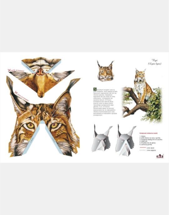 Wymagają wycięcia oraz złożenia zgodnie z czytelną i przejrzystą instrukcją zamieszczoną na każdej masce. Do zestawu dołączona jest gumka.