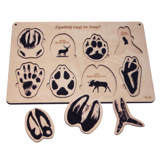 Odkryj tajemnice zwierząt dzięki naszej drewnianej układance Zgadnij jaki to trop? Te wyjątkowe puzzle pozwolą dzieciom poznać różne ślady zwierząt, jednocześnie wspierając ich rozwój sensoryczny i poznawczy. Zabawa nimi pomaga w poprawie koncentracji, rozwija koordynację ręka-oko oraz uczy logicznego myślenia. To wspaniała forma nauki przez zabawę, która rozbudza ciekawość i zachęca do zgłębiania świata przyrody.